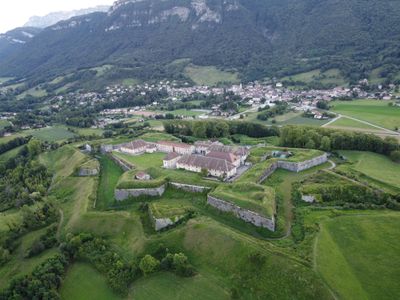 Fort Barraux stands at 370 meters elevation in the Isère valley, controlling the route between Grenoble and Chambéry with its pentagonal bastions and defensive walls.