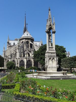 Located behind Notre-Dame Cathedral's apse, visitors can access the fountain throughout the year in the Square Jean-XXIII gardens.