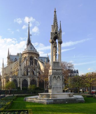 Fontaine de la Vierge, Gothic Revival fountain in Square Jean-XXIII, Paris, France