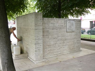 The fountain was installed during the 19th century municipal program to supply clean water following water shortages and price increases after the siege of Paris.