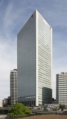 Twenty-four elevators serve the building's occupants across 53,000 square meters of office space, accommodating numerous businesses and professional services.