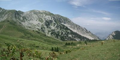The mountain houses the deep Loup Garou pit and Jacques Chalon cave system, presenting substantial opportunities for speleological exploration.