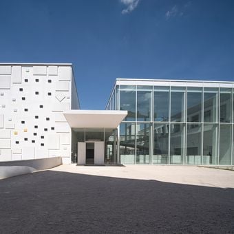The facility integrates a film screening room, publishing house Les Presses du Réel, and specialized workshops for artistic education.