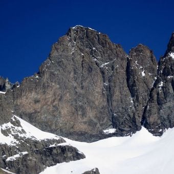 Le Pavé reaches an elevation of 3823 meters within the Écrins massif, featuring exposed rock formations and steep glacial slopes along its flanks.