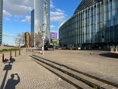 Multiple versions of this thumb sculpture exist worldwide, including installations in Seoul, Washington, and Koblenz, but La Défense hosts the largest variant.