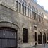 The thirteenth-century building displays a restored facade with distinct architectural elements, including ornate windows and an interior paved courtyard.
