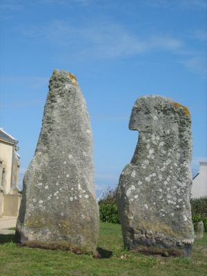 The stones' profile resembles two figures in conversation, leading to their Breton name 'Ar Fillistérien', which translates to 'The Chatters' in English.