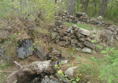 Marked hiking paths wind through the dense forest to reach the site, though it sits on private land so access should be verified beforehand. Sturdy footwear is essential due to the sloping, uneven terrain and forested surroundings.