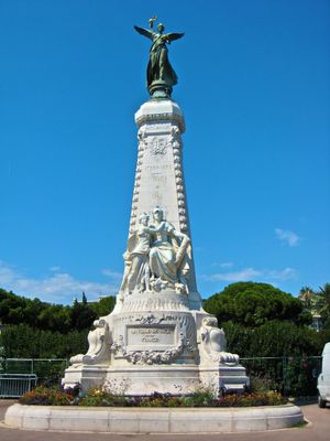 The Monument du Centenaire features a bronze winged Victory at its top and marble figures at its base representing Nice and France.