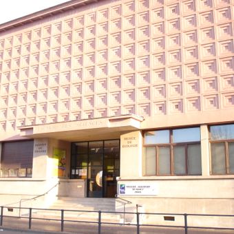 The 1933 building features a distinctive windowless design by architects Jacques and Michel André to protect the natural history collections from light damage.