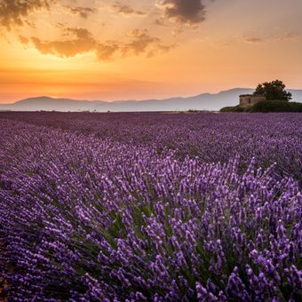 The lavender fields follow a geometric pattern that is particularly striking from above, with almond groves serving as natural borders between crops. Photographers and artists travel from around the world to capture this orderly landscape.