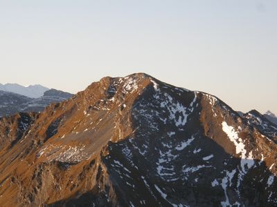 The sedimentary rocks of Pointe de Vorlaz belong to the Brèche nappe, creating distinct geological formations in the landscape.