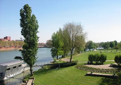 Parc de la prairie des Filtres, Urban park along Garonne River in Toulouse, France.