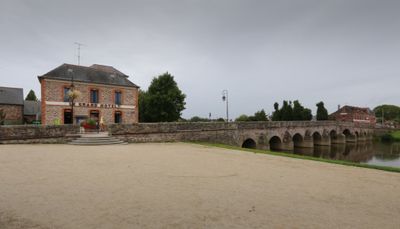 Pont-Réan is a village straddling the municipalities of Bruz and Guichen, situated along both banks of the Vilaine River. The settlement developed around a stone bridge crossing and forms an elongated community with homes and structures oriented toward the water.