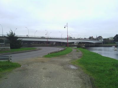 The structure accommodates both vehicular and pedestrian traffic, serving as a primary transportation link between the municipalities of Lorient and Lanester.