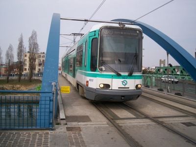Pont de Bondy, Road and tram bridge in Seine-Saint-Denis, France.