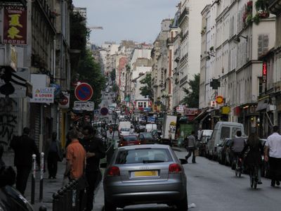 The district extends from Place de la République to Boulevard de Belleville, containing numerous residential buildings and commercial establishments along its streets.