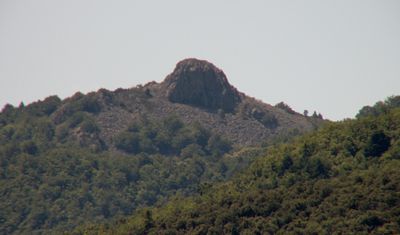 The Roc du Puits de la Neige reaches an elevation of 1,288 meters between Céret, France and Maçanet de Cabrenys, Spain in the eastern Pyrenees.