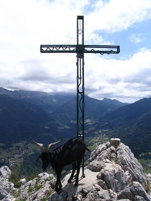 The summit features a mountain cross, following the regional tradition of placing religious symbols at elevated points throughout the French Alps.