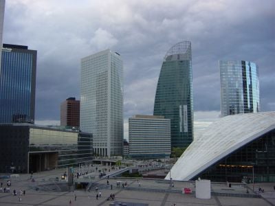 French architect Michel Andrault designed this building as part of the modern architectural collection that defines the La Défense business district.