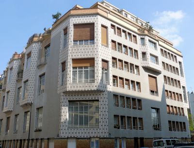 Architect Henri Sauvage designed this residential structure between 1929 and 1932, incorporating geometric shapes and polychromatic tiles throughout the exterior.