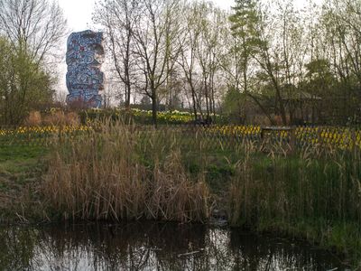 The structure functions both as an artistic installation and a television tower, allowing visitors to explore its interior spaces and exterior formations.