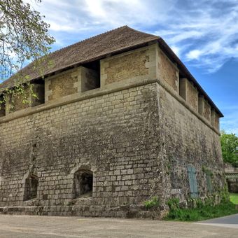 The Tour de Rivotte stands on a rock foundation surrounded by a protective moat within the fortification system of Besançon's citadel.