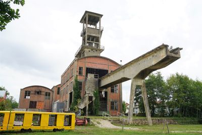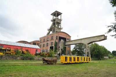 The museum features operational mining equipment, reconstructed underground galleries, and a reinforced concrete winding tower within former mining buildings from the industrial era.