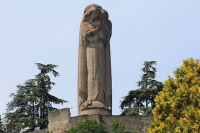 The statue represents the Madonna and Child theme, receiving official recognition as a historical monument in March 2020 under the Mérimée identification PA01000049.