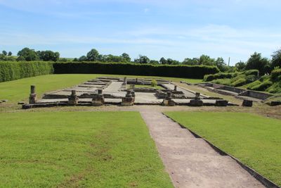 The site exhibits remains of Aregenua, including two Roman houses, a forum district, and preserved streets from the ancient settlement.