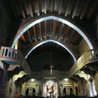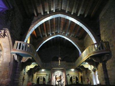 The church structure dates from the 13th century and incorporates defensive elements such as arrow slits that were later widened to allow more light.