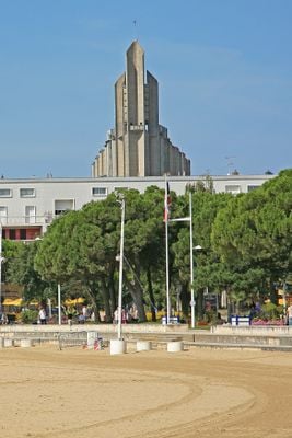 Located in central Royan, the church structure rises 56 meters high, spans 45 meters in length, and measures 22 meters in width.