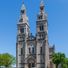The Sacré-Coeur church features an octagonal tower-lantern above the transept crossing and two square towers adorned with stone spires on the facade.