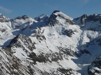 The main route starts from the Portillon mountain hut at 2570 meters, requiring technical climbing skills and appropriate mountaineering equipment.
