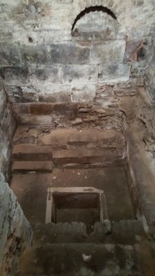 The Jewish ritual bath consists of a square chamber measuring three meters on each side, with Roman arches supporting a vaulted ceiling.