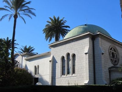 The building integrates traditional Jewish architectural elements with regional French Riviera design influences, creating a distinctive religious structure in Cannes.