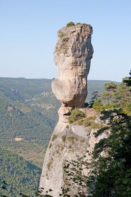 The Vase de Sèvres presents itself as a tall limestone pillar rising from the cliffs of Gorges de la Jonte in the Causse Méjean region.