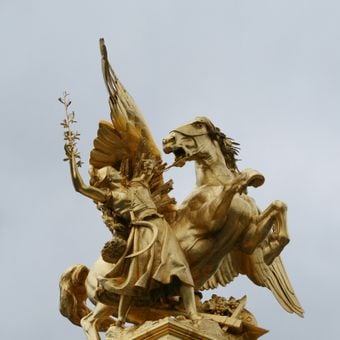Emmanuel Frémiet created this monumental sculpture in 1900 as part of the decorative elements adorning the newly constructed Pont Alexandre III bridge.