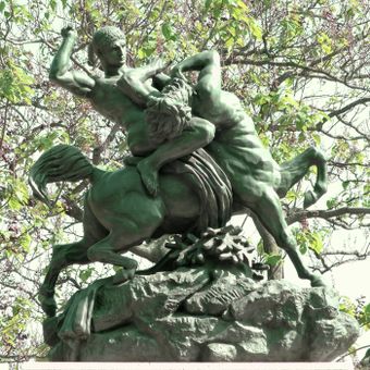 Theseus Fighting Bienor, sculpture by Laurent Marqueste