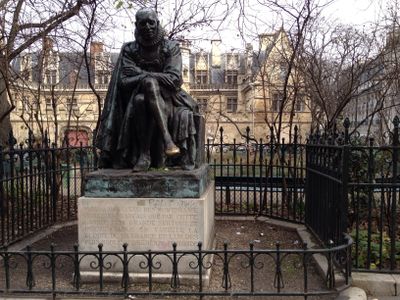 Michel de Montaigne, Bronze sculpture in Square Samuel-Paty, Paris, France.