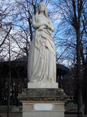 The statue belongs to the Reines de France et Femmes illustres collection, which presents significant female figures from French history throughout the garden.