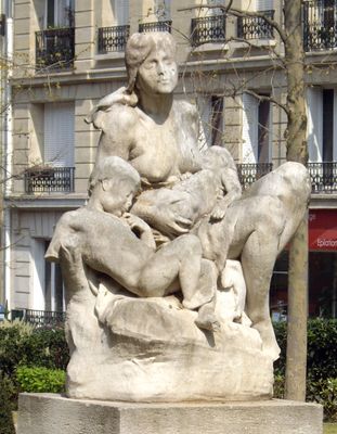Maternity, Stone statue in Square Adolphe-et-Jean-Chérioux, Paris, France.