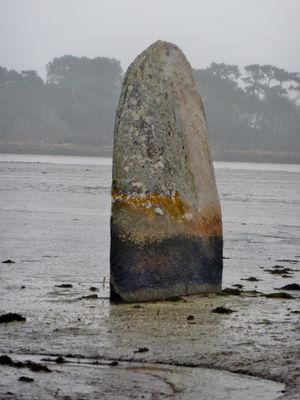 The Penglaouic menhir reaches a height of 3 meters and stands on the coast between the communes of Loctudy and Pont-l'Abbé.