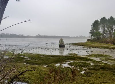 Originally erected 2 kilometers from the coastline 5000 years ago, this megalith marked the source of a small stream in prehistoric times.