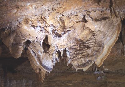 The limestone cavern extends through multiple galleries featuring mineral formations, water-carved passages, and underground lakes across its extensive network.