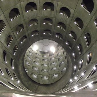 The facility incorporates a reflective mirror system that channels natural light from the surface to illuminate the underground levels naturally.