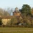 A polygonal water tower stands among the southern outbuildings, accompanied by stables and specialized wine storage facilities near the main structure.