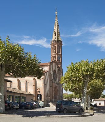 The church stands in the historic center of Grisolles, adjacent to the Calbet Museum and the main square, accessible through pedestrian streets.