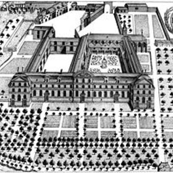 The north-western pavilion remains the only surviving element of the Maurist period construction, facing the adjacent gardens with its distinctive architecture.