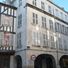 The stone building at 1 Rue du Palais features distinctive ground floor bossage work and contains two bays on Grosse-Horloge Street and three on Chef-de-Ville Street.